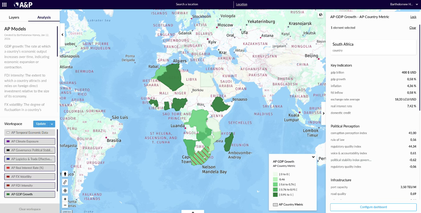 By combining satellite imagery, spatial modelling, and machine learning with Acorn’s proprietary market analysis, we deliver a dynamic view of how assets, logistics, policy, capital flows, and macroeconomic conditions interact in real time.